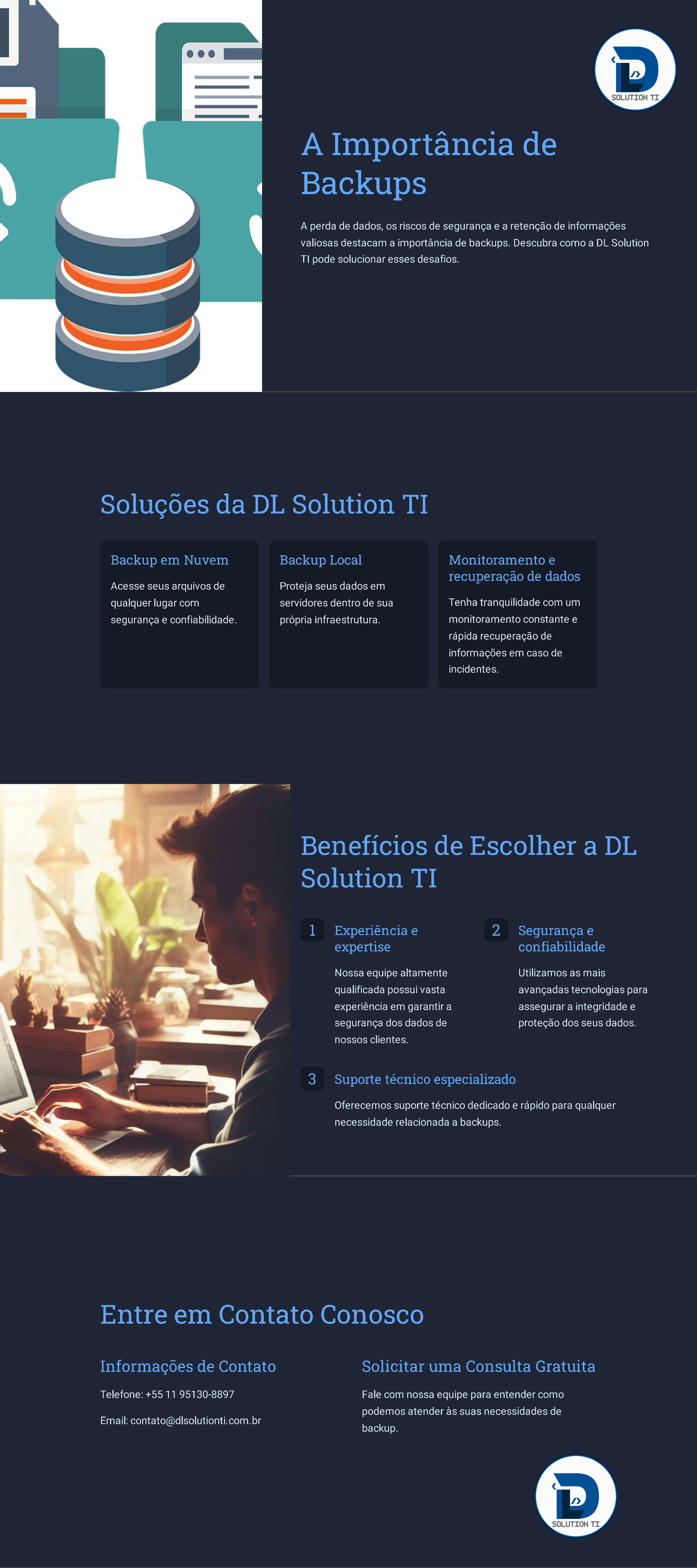 A DL Solution TI oferece suporte técnico abrangente para empresas e indivíduos que necessitam de assistência com problemas relacionados a hardware, software e redes de computadores.